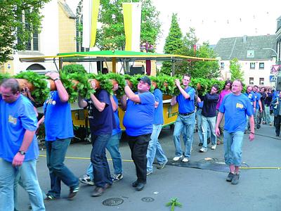 Die Rheinischen Musikfreunde mit ihrem Leiter Jean-Marc Adams sorgten im Kirmeszelt schon am Freitagabend für eine gute Stimmung, als Bürgermeister Norbert Hansen gemeinsam mit dem Vorsitzenden der Kirmesgesellschaft Josef Kornwolf und dem Prokuristen der NETTE-Brauerei Hans Kalter das erste Fass Bier anschlug. Die Bundestagsabgeordneten Ursula Mogg und Dr. Michael Fuchs und mit ihnen Verbandsgemeinde-Bürgermeister Walter Weinbach, NETTE-Geschäftsführer Manfred Schuth und RKK-Präsident Peter Schmorleiz klatschten begeistert Beifall, als endlich das Bier in die großen Tonkrüge floss und die Kirmes endlich beginnen konnte. Die jungen Leute hatten anschließend ebenfalls allen Grund zur Begeisterung, weil „Vampire“, die Band für eine ausgedehnte Nacht so richtig Dampf machte. Nach einem Festgottesdienst, der vom Kirchenchor und der Kirmesjugend mitgestaltet wurde, begaben sich zahlreiche junge und ältere Mitglieder der Kirmesgesellschaft sowie die Repräsentanten der örtlichen Vereine zusammen mit Pfarrer Johannes Steffens, Bürgermeister Norbert Hansen und den KG-Vorsitzenden Josef Kornwolf und Wolfgang Höfer auf den Weg durch die geschmückten Straßen der Gemeinde, die fünf Tage lang im Zeichen einer phantastischen Kirmes stand. Selbstverständlich gehört der Kirmesbaum zu einem ganz wichtigen Requisit des Kirchweihfestes, der von den Mannen der Kirmesgesellschaft sicher und problemlos aufgerichtet wurde. Die Feuerwehrmänner hatten beim Umzug und der Baumaufstellung wiederum die Sicherung des Geschehens in bewährter Manier übernommen. Am Samstagabend ging es weiter mit der schon legendären Saxofon-Formation „Sax´n Di“ und am Sonntagmorgen war ein Swing-Time-Frühstück mit der „Hathouse-Jazz-Band“ angesagt, das erneut viele Fans anlockte. Unterhaltsame Musik, auch am beliebten „Kölsch-Brunnen, attraktive Fahrgeschäfte, kulinarische Leckereien und eine reichhaltige Getränkeauswahl, dazu das herrliche Sommerwetter, all das machte Lust auf die weiteren Kirmestage am Montag und Dienstag. – JÜG