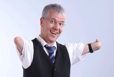 Am 12.04.2019 ab 20.00 Uhr ist der bekannte Kabarettist Rainer Schmidt mit seinem Programm „Däumchen drehen“ zu Gast in der Cafeteria der Förder- und Wohnstätte in Kettig. Humor, Schlagfertigkeit und Lebensfreude. Dies sind Eigenschaften, die Rainer Schmidt auszeichnen. Geboren ohne Unterarme und mit einem verkürzten rechten Oberschenkel machte er sich auf in ein erfolgreiches, vielseitiges Leben in der Mitte der Gesellschaft! Rainer Schmidt nimmt sein Publikum mit auf eine einzigartige Reise in das Land der Inklusion! Sprachwitzig und spitz ironisch „kabarettiert“ der Pfarrer, Buchautor und mehrfache Goldmedaillengewinner bei Paralympics, Welt- und Europameisterschaften. Sein Motto: Keine Hände – keine Langeweile. Er erzählt authentisch und natürlich ohne erhobenen Zeigefinger vom Glück und Pech des Außergewöhnlichseins. Das Kabarettprogramm von Rainer Schmidt ist eine Reise durch die Höhen und Tiefen eines Lebens mit Hindernissen. Oft zum Schreien komisch, manchmal anrührend traurig und immer wieder mal leise zärtlich. „Was glauben Sie, wie sanft mein Däumchen streicheln kann“.Und Rainer Schmidt denkt über die Skurrilitäten der deutschen Schule nach: „Besonders gefällt mir die Förderschule mit dem Förderschwerpunkt sehen. Da gehen blinde Kinder hin. Da kannst du fördern bis die bluten, die fangen nicht an zu gucken. Nennen Sie mir einen Sonderpädagogen, der das Förderziel erreicht: Dann werde ich katholisch und huldige ihm.“Rainer Schmidt macht Seelsorgekabarett. Eine Besucherin: „Der redet den ganzen Abend über sich und doch hatte ich das Gefühl, so etwas habe ich auch schon erlebt.“ Der Erlös der Veranstaltung fließt dem Förderverein der Facheinrichtung für schwerstmehrfach behinderte Menschen zu. Karten zum Preis von 15 € gibt es in der Verwaltung der Förder- und Wohnstätten gGmbH in Kettig, Tel. 02637 9435-0, e-mail: info@fws-kettig.de, sowie bei der Gemeinde Kettig, Tel.: 02637 2176.